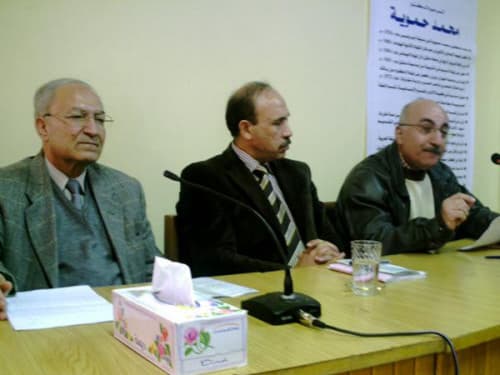 أما الجلسة الثانية فقد ترأسها الدكتور "أحمد أرحيم هبو"، وشارك فيها الدكتور "نضال الصالح" بقراءة تحت عنوان (محمد حموية اسم منسي في القصة السورية)، وتحدث الأستاذ "حسن بيضة" عن الدكتور "حموية" من خلال معايشته له عن قرب، كما قدم الأستاذ الشاعر "محمد منلا غزيل" قصة للدكتور "حموية"..».
