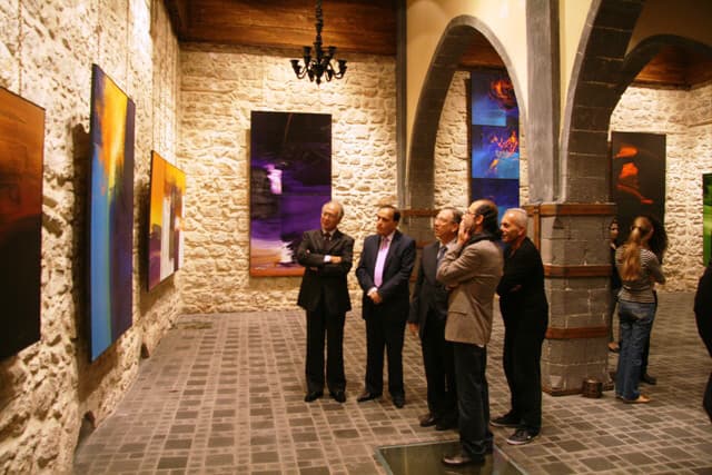 التقينا الدكتور "رياض عصمت" وزير الثقافة السوري الذي جال بين اللوحات لمرتين متتاليتين، فحدثنا عن إحساسه اتجاه تلك اللوحات: «الجرأة، ألوان البحر الأبيض المتوسط، الصوفية، الموسيقا، هي أربعة عناصر تشكل معالم هذا المعرض الذي له هوية واحدة رغم تنوع اللوحات وألوانها، فأحياناً الجرأة تكون في استخدام كتل ومساحات كبيرة باللونين الأصعب في الفن التشكيلي الأبيض والأسود، وهناك إحساس الموسيقا الذي يمكن أن توحي فيه كل لوحة في المعرض، بجانب الحرارة في الألوان التي تعبر عن ألوان البحر الأبيض المتوسط، إضافة إلى لمحات تأمل صوفية، فأحياناً هناك لوحات يغلب عليها اللون الأزرق أو الأحمر، أحس أن فيها نوعا من التأمل والروحانية، هذه هي العناصر الأربعة التي لاحظتها في لوحات تعبر عن الفن التشكيلي الراقي والحديث».