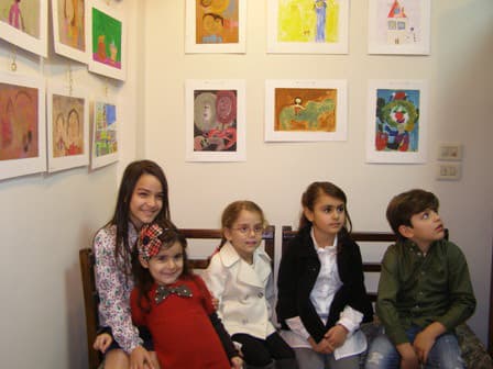 أما الفنانة التشكيلية "عروبة ديب" عن المعرض الجماعي والمرسم فتحدثنا: «نحن نقدم في المرسم دورات رسم للأطفال أثناء العام الدراسي كل يوم سبت، تتضمن ساعة خزف وساعة رسم، وكل ستة أشهر نقدم معرضاً لإطلاع الأطفال على نتاج الأطفال، في هذا المعرض قدمنا جوائز للفائزين ودورة مجانية لمدة شهر كنوع من التشجيع لهم، وتم اختيار الفائزين حسب الحرية والعفوية في الألوان التي استخدموها، فالأطفال المشاركون من المرسم ومن أطفال مدرسة "القرية الصغيرة"، فقد لاحظت في اللوحات فرحاً وتوازناً في اختيار الألوان، فالأطفال يستخدمون الحس في الرسم وليس العقل».