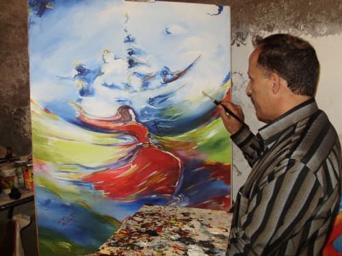 ويضيف:«أرسم في جميع الحالات من حيث محاكاة الموضوع ذاته، فأنا لا أستطيع القول أنني أرسم في حالات الفرح، سيما وأن الفرح لم يعد متواجداً كما كان في السابق، فنحن اليوم نقتنص الفرح، أما أنا فإذا كنت مضطراً للفرح فإني أجده في لوحاتي، فهي المصب النهائي لأحاسيسي بحيث أني أهرب من الواقع لأغوص في عالم أصنعه لنفسي، وأناغم ألوانه لتحارب الواقع الكئيب».