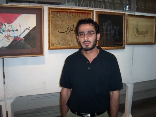 إنه الشاب الخطاط (فادي العويد) من مواليد قرية كفر لاها (غرب حمص) /1979/.