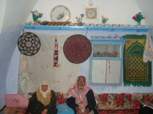 والكلام للمدرس "محمد محمود الجمعة"، والذي أضاف عن جماليات هذه الرفوف: «المرأة المتقّنة تتميز بترتيب الصحون، والقدور النحاسية فوق الرف بطرق فنية تظهر جماليات تلك اللمسات الفنيّة»، وبقيت مادة الطين لسنوات طويلة هي المادة الأساسية لصناعة الرفوف، وذلك حتى بداية /الثمانينات/ من القرن الماضي، حيث صارت تصنّع من الخشب، وفوق الرفوف، أو تحتها يتمّ تعليق مصنوعات القش من (الجونيات أو النقاقيل)، وهي من أساسيات الديكور في البيت الريفي، وأيضاً هناك قطعة القماش التي لا يستغنى عنها في أيّ بيت ريفي، وهي عبارة عن قطعة مستطيلة لها جيوب متناوبة، لذلك سميت بـ (أم جيوب) أو (جيّابة) كما أطلقت عليها زوجة الحاج "سرحان" من قرية "معرشمشة" و(الجيّابة) تستخدم لوضع الأشياء الدقيقة فيها، كالأبر والمسلاّت والمخارز والخيوط والكشتبانات، وغير ذلك، وعلى الأرض يتمّ مدّ حصيرة القش المصنوعة من البردي، وفوقها ما يعرف (بالبسط) المصنوعة من شعر الماعز، إضافة لجلود الأغنام التي تذبح عادة إمّا للضيف, أو خلال موسم الأضاحي، وأخيراً لن ننسى الفانوس، أو ضوء الكاز الذي كان ينير بيوت الفلاحين في الليل، وبه فقط كنّا نرى كلّ هذه الأثاثات التي ذكرناها حين يحلّ الظلام.