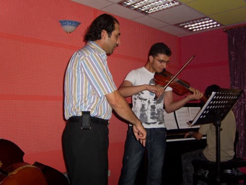 أما "علاء الجمال" من مواليد عام 1992م، لم يتقدم للانتساب في المعهد لأنه تجاوز السن المسموح به، ولكنه يتواجد بشكل مستمر في المعهد للتدريب وعنه قال: «والدي عازف كمان وهو الذي شجعني على تعلم العزف، اتبعت عدداً من الدروس الخصوصية ودرست على يد الأستاذ "معين نفاع" مدير المعهد حالياً، وأنا دائم الزيارة للمعهد وأتدرب مع زملائي ورفاقي المنتسبين تمهيداً لفحص المقابلة في المعهد العالي للموسيقا».