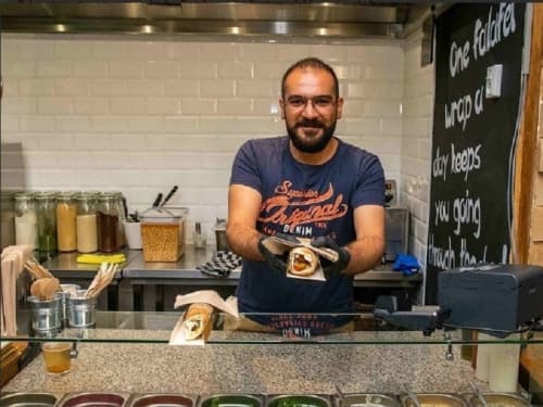 وعن أول أعماله الفردية في "هولندا" أكمل قائلاً: «بعد فترة صغيرة من العمل في الطهي، قمت بافتتاح شركة صغيرة يطلق عليها "كيترينغ" لتأمين الطلبات من داخل منزلي، وأصبح الناس يتداولون اسمي بينهم، ويتحدثون عن الطعام السوري الذي أقدمه بوصفات شهية جداً، هذا الأمر حقق لي انتشاراً ضمن منطقتي، ومن خلاله قُدِمتْ لي فرصة لافتتاح مطعم صغير لكنه لا يتسع لأكثر من نوع واحد من الوجبات، وهنا قررت أن تكون الوجبة الشعبية الشهيرة التي سأقدمها هي "الفلافل"، كونها من التراث السوري، ومكوناتها شرقية جداً وغير مألوفة بالنسبة للهولنديين، وعلى الرغم من انتشار الكثير من المطاعم في الآونة الأخيرة في أوروبا باسم "المطعم السوري"، إلا أنها لا تقدم في أطباقها المكونات الحقيقية للمأكولات السورية، فحاولت استخدام البهارات الخاصة بالفلافل مع الإضافات والخضراوات الخاصة بها، وبالفعل لاقت قبولاً كبيراً من الناس مختلفي الهويات والجنسيات، وأصبح هذا المكان الصغير مقصداً للكثير من الناس، فبعضم يرغب بتناول "الفلافل"، والآخر يأتي ليسأل عن أسرار الوصفات السورية، والآخر يأتي ليأخذ الطاقة الإيجابية لبدء مشروعه الخاص».