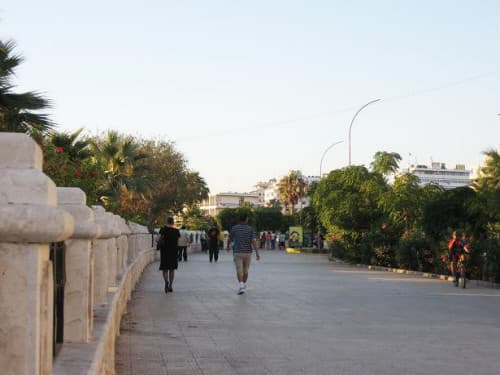 يمثل رصيفه الغربي حالياً مكاناً مناسباً لعشاق رياضة المشي، حيث يتنزه كثير من ممارسي هذه الهواية بزيهم الرياضي يمشون أو يركضون على طوله، eLatakia زارت المكان بتاريخ (24/6/2008)م، مع مغيب الشمس، والتقت الناس في الشارع، ممن اعتادوا أن يخرجوا في مثل هذا الوقت هرباً من رطوبة الصيف، يقول (سامي مهنا) أحد هواة المشي هناك: