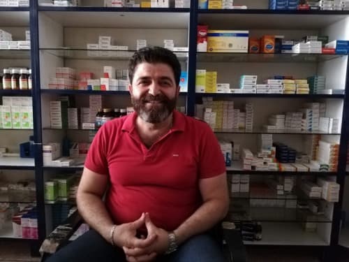 أما عن عمله الصيدلي فيقول: «عملي في الصيدلية عمل شاق ويأخذ مني جل وقتي، أحاول أن أسرق من عملي لحظات أهرب فيها إلى الشعر، وفي بعض الأحيان يقتحم الشعر مجال عملي، وكم من القصائد شاركتني بها رفوف الدواء ورائحتها، وكما الشعر متعة، عملي هو متعة بطعم آخر، لكنه اليوم أفرغ من مضمونه وبات للتجارة فقط، علماً أنني أحاول قدر الإمكان أنسنة العمل الصيدلي والعود به إلى أصله».