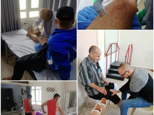 منذ بدء ارتفاع أعداد إصابات الحرب من الشّلل، تصاعدَ معها افتتاح مراكز خاصّة بالمعالجة الفيزيائية، تقدمُ العلاج لكلّ جريح بشكلٍ مجانيّ بتخصيص يومين أو ثلاثة أسبوعياً ولكنّه بحاجة لتطبيق علاج يوميّ لتبقى عضلاته وأعصابه بحالة تنبيه دائم والاقتراب من عتبة الاستجابة ما أمكن بزمنٍ قصيرٍ، ظهرَ تباعاً لذلكَ وجود أشخاصٍ غير مختصين يقومون بعلاج فيزيائي من منازل الجرحى بنصف أجر المعالج المختص ممّا شكّلَ إقبالاً عليهم، وعن ذلك تحدث الدكتور "علاء الأحمد": «المعالج غير المختص يقوم بحركة تدليك لمنطقة الإصابة بشكلٍ مباشر وهي تفيد بمنع التكلس فقط، وربما تكون هناك أضرار محتملة كون هذا التدليك لا يستهدف النسيج الضّامّ (النّسيج الداخلي)، وكمثال لذلك ممكن أن تكون الركبة فيها التهاب أو قطع رباط ضاغسي وهذه الحالة لا تُظهِر توّرماً أو لوناً مغايراً ومن ناحية أخرى مريض الشّلل لا يشعر بوجع فيها، فتطبيق التدليك هنا سيؤذيه وسيفاقم الالتهاب، ولربما أيضاً هناك ضمور عضلي سببه أذية عصبيّة فيتوجب معالجة الأذية لا معالجة مكان الضّمور، أي أنّ العلاج التخصصي يبحث عن سبب المرض وبعدها يحدد مكان وكيفية العلاج، والعلاج المنزلي حتى ولو برفقة متخصص تكميلي كون الآلات هي جزء أساسي من نجاحه ويتعذر اصطحابها للمنازل».