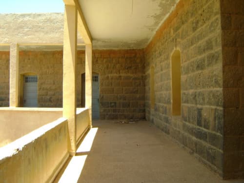 بنيت منذ قرن بالحجارة البازلتية على أرض رملية، حيث تمتاز أسقف غرفها بالارتفاع الذي يصل في كل منها إلى حوالي أربعة أمتار ونيف، وجدران مقاومة لعوامل الطبيعة وظروف المناخ، وهي لا تزال تجتذب اهتمام الباحثين عن التراث والجمال المعماري وعلافة المكان في تركيبة العلاقات الاجتماعية