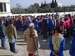 بالرغم من العقبات التي تعاني منها المدرسة الابتدائية في قرية "المباركية"- عشرين كيلو متر جنوب غرب مدينة "حمص"- بالمقارنة مع المدارس الأخرى في المنطقة، فقد كان مديرها "متفائلاً جداً" حسب تعبيره، والذي ذكر أن العملية التعليمية فيها مقبولة إلى حد ما: «لكن المشكلة تكمن في واقع البناء الحالي للمدرسة».