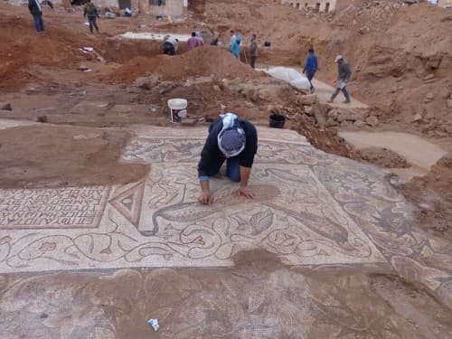 وأضاف: «بعد الانتهاء من عمل الحفريات، كان عرض الموقع 18.5 متر، وطوله 37 متراً؛ أي ما يعادل مساحة 650 متراً مربعاً الكنيسة كاملة، واحتوت على أشكال هندسية بالأروقة، وهي مقسمة إلى ثلاثة أقسام: شمالي، وأوسط، وجنوبي. الرواق الشمالي يحتوي أشكالاً هندسية ونصاً كتابياً، ومشهد لبوة تفترس ثوراً، وغزلان وطيور. والرواق الأوسط هو الرئيس، ومقسم إلى قسمين؛ الأول أمام "البيما" الذي احتوى مشاهد متعددة للحيوانات من طيور مائية وحجل وأسماك وكلاب وأحصنة وأرانب، بينما القسم الثاني المتضمن "البيما" احتوى مشاهد هندسية وستة خراف على الأطراف، ووسطها شجرة الحياة، وعليها طائر الفينيق الأسطوري، إضافة إلى وجود نص كتابي ضمن الانحناءة المتجهة إلى الغرب. عدد النصوص الموجودة كان 14 نصاً، ولكل منها تاريخ، وكان أقدم نص يعود إلى عام 412م، وأحدثها يعود إلى عام 437م».
