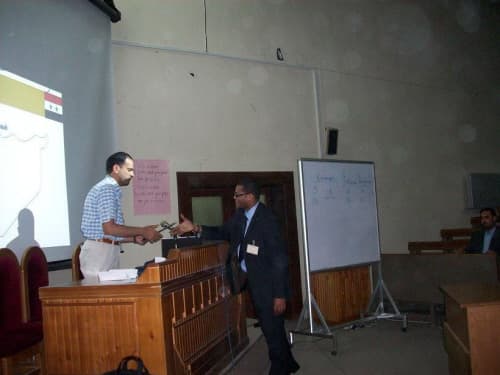 eAleppo كانت حاضرة في هذه الندوة ورصدت عدة لقاءات, منها مع الدكتور "أحمد سعدي" من الجزائر الذي قدم بحثاً بعنوان: "الترجمة و التنمية اللغوية, وذهب فيه إلى أن تعليمية اللغات عملية تعتمد على اللغة الأم أو اللغة التي يمتلكها المتكلم مسبقاً لتحصل على التفعيل المطلوب والفهم السريع للوحدات المعجمية الجديدة المراد نقلها إلى المتعلم، وينبغي أن يكون المعلم مترجماً ويقدم تمارين في الترجمة تليق بمستوى المتعلمين".