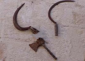 والمنجل يستخدم لحصد القمح أمّا الشعير والعدس والكمون فيحصد بالكف خاصة في المناطق الرملية الجافة."