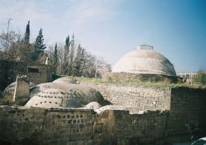 مع العلم أن كافة جدران الحمام بنيت بحجر البازلت بمداميك غير متساوية بينما بنيت كافة الأقبية وأقبية الأجزاء الثلاثة الأولى بالأجر.