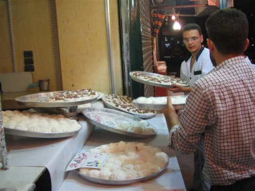 أو نراها خلال زياراتنا إلى الحدائق والملاهي والمتنزهات العامة، بألوانها الزاهية المتنوعة.. غير أن تلك الحلوى التي كنا نشتريها أحياناً بالنقود، وأحياناً بأن نأخذ له كمية من السكّر ليصنع لنا صينية خاصة ملوّنة، تلك الحلوى هي نوع طفولي يختلف عن "غزل البنات" الرمضاني بلونه الأبيض وخيوطه الملفوفة التي يعلوها الفستق الحلبي.