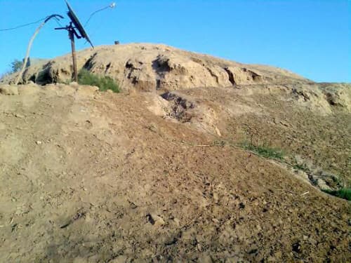 وهو ذو تربة ردمية، ويبدو من الجهة الغربية والجنوبية شديد الانحدار، وخفيف الانحدار باتجاه الشمال والشرق، وبمجرد وقوف المشاهد على سطح التل، سيشاهد قطعاً من الحجر الفخاري والكلسي، وأوانٍ فخارية متكسرة، وهناك مجموعة من الحفر التي تعتري جدار التل، حيث تبدو من خلالها الأحجار الفخارية، التي تؤكد أثرية المكان بشكل لا يدع مجالاً للشك، حتى لدى الإنسان العادي غير المتخصص، وقد استدل سكان المنطقة على ذلك من خلال حفر القبور لموتاهم، حيث كثيراً ما كانت تصادفهم الكسر الفخارية المتعددة.