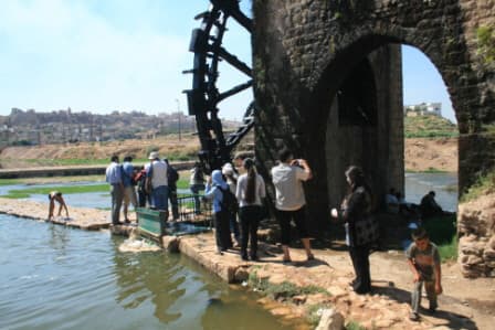 أما تدوير نواعير "شيزر" فكان حكاية أخرى تحدى فيها فريق "eSyria" انخفاض منسوب مياه "العاصي" في فصل الصيف.. جربّوا جمعياً الصعود إلى أعالي أدراجها ليتلقوا بركة مياه النهر..
