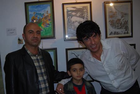 حسن عشي يتوسط والده ومدرسه الفنان مازن غانم