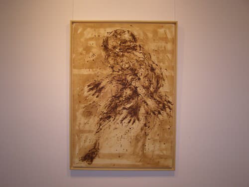 كأن مادة "تفل القهوة" كانت مصيدة جميلة شدّت النظر إلى تفاصيل اللوحة، فاستقرت العين في إحدى التفاصيل ومن ثم أبحرت فيها وفي تلك المقاطع المضطربة من لوحاته، عن ذلك يقول الأستاذ "أنور بدر": «إن "كاظم" بمعرضه هذا انتقل إلى التعبيرية المجردة أو التجريد التعبيري، حيث لعب على "البورتريه" والملامح واستخدم اللون الرمادي بطريقة ذكية جداً، أما ضرباته العشوائية فهي قاسية وواضحة ووظفت في اللوحة بشكل مبدع. عبّر "كاظم" عن تلك الأحاسيس التي تدور في داخله من خلال الشخوص والملامح التي ظهرت على لوحاته فربط هذا التجريد بالرؤية وبتفاصيل مقصودة بدلالتها وإيحاءها التي تصل من خلال عين القارئ».