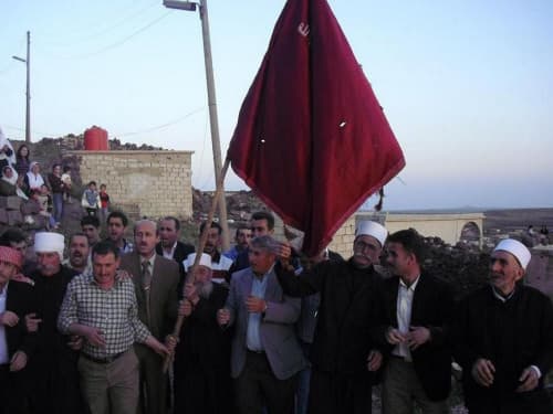 وحين حمل المعمر الشيخ "حسن الخطيب" البيرق أوضح سبب دموعه قائلاً: «كيف لي ألا أبكي وقد سقط تحت لوائه أكثر من 12 شهيداً من أنبل شباب قريتنا في معارك الثورة السورية الكبرى، إضافة إلى شهداء من بلدنا الحبيبة سورية من شمالها إلى جنوبها؟! فخروجه من قريتنا له دلالة اعتبارية كبيرة، لكن عزاءنا أن يكون في صرح شهداء الثورة الذي هو عزة للثوار وفخر لنا، في مكان ضم فيه رفاة القائد العام للثورة "سلطان باشا الأطرش"».