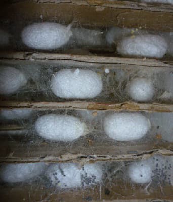 أضاف المهندس "سامر": «درجة الحرارة المناسبة لخروج اليرقات من البيض بين 23-25 درجة مئوية بالإضافة إلى درجة رطوبة نسبية 70-75%، وهذه العوامل هي الأهم في التربية، وتتم عملية الفقس خلال 3-4 أيام».