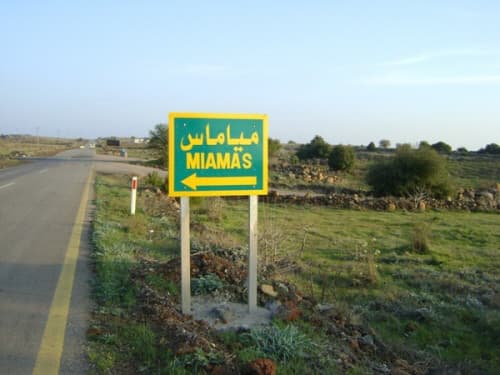 «قريتي من القرى الجميلة الوادعة ضمن محافظة "السويداء" سميت "مياماس" لأن اسمها أتى من "الميس"، وهو نوع من أنواع "الزبيب" و"ميسة" هي من الأشجار الحراجية التي تغرس للزينة وقد وجد على آثارها رسوم ونقوش من أشجار العنب وغيرها، تقع هذه القرية إلى الجنوب الشرقي من مدينة "السويداء" وتبعد عنها عشرين كيلو مترا، تتميز بطبيعتها الساحرة ومناظرها الخلابة حيث تحيط بها التلال المكسوة بأشجار السنديان، دائمة الخضرة، وتكثر فيها أشجار التفاح والعنب والكرز وكأنها سجادة ربيعية خضراء على مدار العام، إضافة إلى هوائها العليل، ما يجعلها مصحاً نفسياً ومنطقة سياحية مميزة، يتوافر فيها كل ما يبهج النفس ويسر العين، تحتوي على الكثير من الآثار والأوابد التاريخية حيث تمتد جذورها إلى عصور ما قبل التاريخ وأهم آثارها المتبقية المعابد الوثنية الرومانية التي بنيت على معابد وثنية الأنباط، ثم تحولت في العصور البيزنطية إلى كنائس مسيحية من هذه الآثار الكنيسة والقصر في وسط القرية إضافة إلى الحمامات التي حمامات "شهبا" وفي غرب القرية موقع "دير ماسك" والذي نرى فيه شجرة توت معمرة يمتد عمرها إلى أكثر من ألفي عام.
