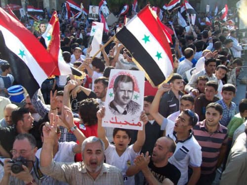 نحن اليوم بتجمعنا ندعم مسيرة الإصلاح التي يقودها السيد الرئيس وندعم دور الجيش العربي السوري البطل في بسط الأمن والأمان على كل ربوع "سورية" وتطهيرها من المجموعات المسلحة..».