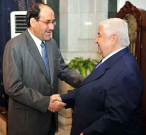 في إطار التنسيق القائم بين قيادتي البلدين الشقيقين سورية والعراق التقى "وليد المعلم" وزير الخارجية والمغتربين أمس الثلاثاء 31/5/2011 مع "نوري المالكي" رئيس الوزراء العراقي حيث جرى استعراض الأوضاع في المنطقة وسبل تطوير العلاقات الثنائية في مختلف المجالات.