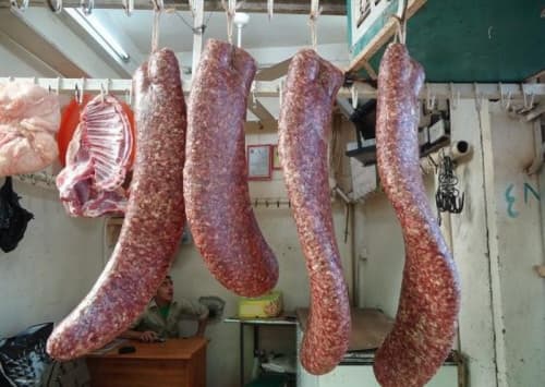 وعن طريقة تحضيرها يقول: «نأتي بلحم العجل ونأخذ قطعاً من الفخذ ونقوم بفرمها على الماكينة بشكل جيد ونضع فصوصاً من الثوم بمقدار معين أثناء الفرم، ثم يتم وضع البهارات التي تتكون من "القرنفل" و"الفلفل الأسود" و"الهيل" و"القرفة" و"الكمون المطحون" و"الكزبرة المطحونة" وقليل من "جوزة الطيب" و"بهار حلو"، وتدعك مع اللحمة المفرومة بشكل جيد، وبعد أن تصبح اللحمة جاهزة يتم تحضير أمعاء الدابة التي سيتم حشو اللحم بها، وأيضا تحتاج الأمعاء لبعض الجهد في عملية الغسل، فبعد إزالة الشحم منها قدر المستطاع تغسل جيداً وتقلب وتنظف جيداً بالطحين والملح والحامض وتغسل بالماء عدة مرات، وتقلب مرة ثانية حتى تصبح نظيفة وجاهزة تماماً لعملية الحشو باللحم، وهناك طريقتان للحشو فإما أن تكون إحداها يدوية وهذه الطريقة تستخدمها ربات المنازل"، والطريقة الثانية عن طريق الماكينة المخصصة لذلك وهي أفضل وذلك لتفريغ الهواء بشكل جيد، وبعد الانتهاء من حشو اللحم يتم ربط القطع بحيث تصبح سلسلة متصلة مع بعضها بعضاً ومن ثم تعرض للتجفيف بالهواء الطلق بعيداً عن الشمس».