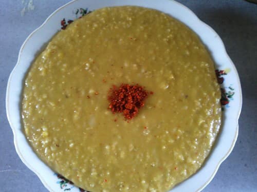 إن أفضل أنواع "العدس" الذي يستعمل في إعداد هذه الطبخة هو "العدس" الذي تنتجه قرى شمال "حلب" وفي مقدمتها قرية "ياقد العدس" المشهورة، والذي يتميز بشكله المدوّر ولونه الأحمر، وذلك بعد جرشه في طواحين حجرية منزلية، أما "العدس الكردي" المنتج في منطقة "عفرين" فلا يصلح لهذه الأكلة إنما يدخل في إعداد أكلة "المجدّرة"، ولذلك تقوم الأسر الريفية بشراء النوع الأول من "العدس" وحفظه في مطابخهم كمؤونة سنوية خصيصاً لهذه الطبخة».