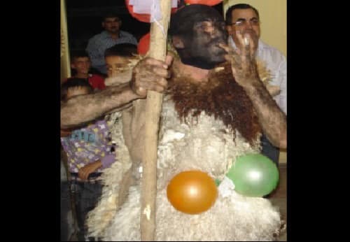 كان يقفز حتى تصل قدماه ظهره ويضرب على الدف وهو يقول: "مد للّي إيدك عالجيبة... لا هي خساسة ولا عيبة"».