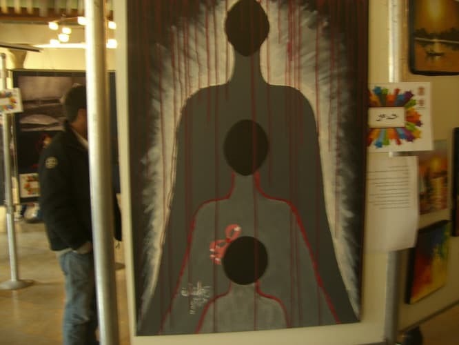 عكس الشاب "محمد عمر" واقع المرأة في المجتمع بلوحة استخدم فيها الإكريليك، محاولاً من خلالها إيصال فكرته للآخرين، إضافة لأربع لوحات يظهر فيها عراقة "دمشق" في معرض "uni art".