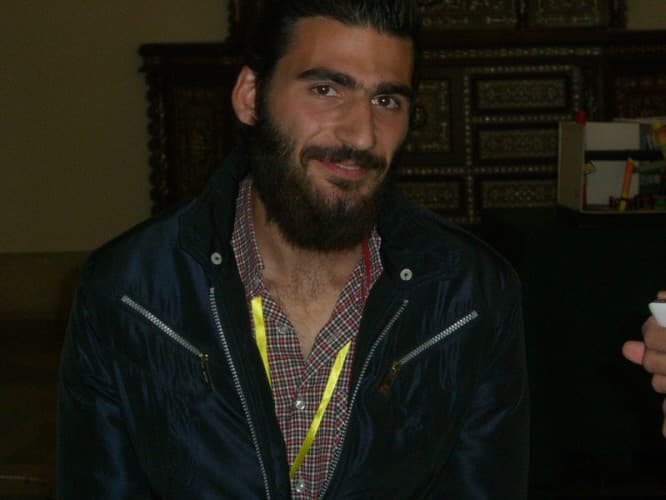 مدونة وطن "eSyria" زارت المعرض في قاعة "رضا سعيد" بتاريخ 24 كانون الأول 2014؛ حيث التقت "محمد عمر" وعن مشاركته حدثنا قائلاً: «شاركت بالمعرض بأربع لوحات فوتوغرافية ولوحة إكريليك، الصورة الأولى هي محاكاة لـ"دمشق" بكل أطيافها، أما الثانية فهي لوحة نحاسية حاولت من خلالها إظهار تقنية الحرفيين السوريين بصناعة النحاس، أما الثالثة فهي عبارة عن صورة تظهر مدخل "باب شرقي" حيث أنظر إليه كمدخل للحضارة، كما شاركت بلوحة أسميتها "نقاء الروح" تظهر انعكاس الشمس على نبات مكسو بالثلج وهو ما يضيف عذوبة ونقاء إلى الطبيعة».