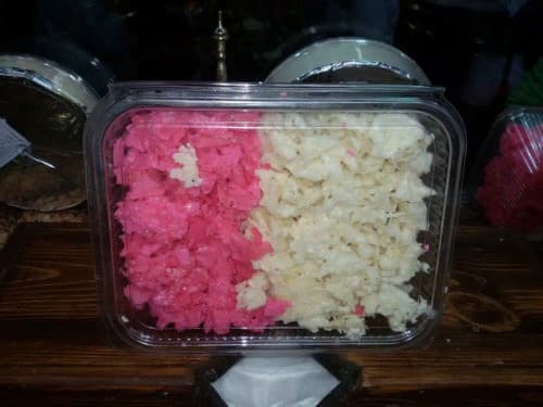 وفي لقاء مع "فادي الحصري" أحد العاملين في محل صناعة وبيع حلويات في منطقة "الشيخ سعد" يقول: «من أكثر أنواع الحلويات طلباً لما لها من منظر جميل وطعم لذيذ، وهي عبارة عن عجين يتمُّ قليه بالزيت ثم تلوينه بالأبيض والأحمر، وفي المرحلة الأولى من الإعداد نقوم بخلط الطحين الأبيض بمقادير معينة من الماء والملح ليصبح مزيجاً لزجاً، بعدها يسكب بمعيار دقيق على دفعات فوق مقلاة كبيرة، مدهونة بالزيت أو السمن النباتي ومسخنة على النار لدرجة كبيرة، فينتج لدينا رغيف مدور رقيق جداً ننزعه عن المقلاة وننشره حتى يبرد، وتترك جميع الأرغفة يومين أو أكثر لتجف بحسب الطقس، وتترك بعدها 15 يوماً داخل ما يسمى "أكياس السكر"، وهي أكياس من القماش الأبيض لا يدخل فيها النايلون حتى لا تتعفن الطبخة».