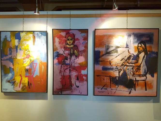 ويتابع: «اهتماماتي الموسيقية تعود إلى زمن الطفولة، ومجموعتي الثالثة لعازفات يعزفن على بعض الآلات الموسيقية، والرابعة تكرس موضوع المرأة في تجربتي، لأنها رمز حضاري وجمالي، فهي حاضرة في أعمالي؛ وخاصة العصرية "الموديل"، التي تأتي كرد فعل عفوي ضد نزعات التخلف والتطرف، ولهذا وضعت عنواناً فرعياً للمعرض: "الفن يتعزز دوره في الأزمنة الصعبة"؛ لأنني أقدم الجمال لمواجهة البشاعة في هذه المرحلة، فلوحاتي تحمل الفرح وغنية بالألوان الزاهية، وتدل على استمرارية الحياة على الرغم من الألم الذي نعيشه؛ لأن الأمل موجود بغدٍ أفضل».