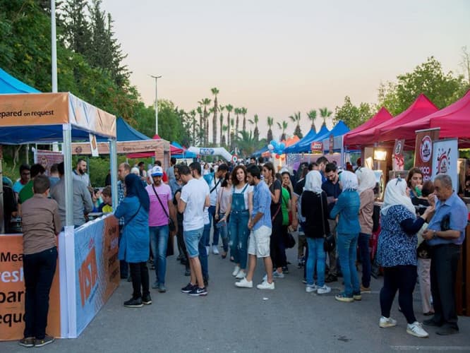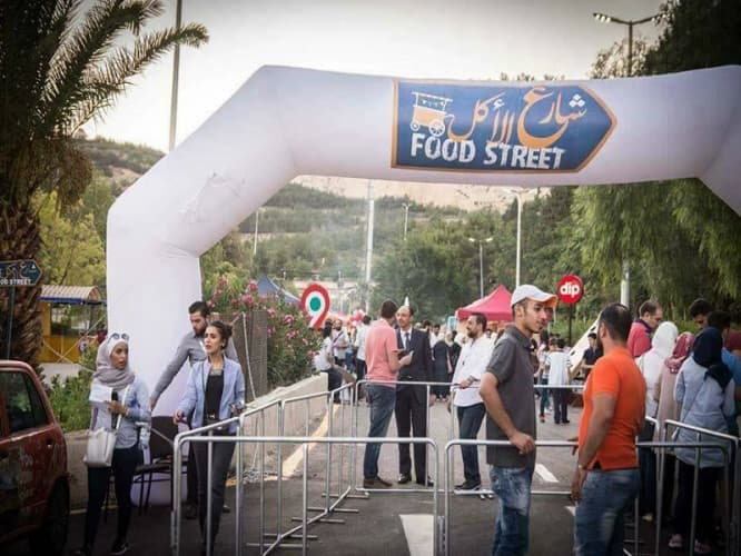 وعن تأسيسه "شارع الأكل" بالشراكة مع فريق "سوشلها"، يتابع حديثه قائلاً: «في محاولة لإطلاق فكرة تسويقية، وفي الوقت نفسه تخدم المجتمع من الناحيتين الترفيهية والتجارية، انطلق "شارع الأكل" في حديقة "تشرين" من 27 حزيران وحتى 26 تموز ضمن فعاليات مهرجان "الشام بتجمعنا"، وحقق الأهداف الموضوعة سابقاً، حيث تركزت الفكرة على جمع العديد من أصحاب الاختصاص في مجال الإطعام في مكان واحد، وإخراج الزوار عن المألوف، وتذوق وجبات جديدة ومختلف في مكان واحد، إذ لاحظنا في المدة الأخيرة تكرار المأكولات في أغلب المطاعم، وعدم ظهور أماكن ترفيه في الهواء الطلق، وأحببنا من خلال هذه التجربة أن تقوم مجموعة من المطاعم والطهاة من ذوي الاختصاص الراغبين بتقديم وجبات بطريقة جديدة ومختلفة، حيث إن منهم من لم يكن يملك مطعماً، مع إضافة ألعاب ترفيهية تناسب الصغار والكبار، مثل: رمي الكرة، والتصوير الفوري، إضافةً إلى تنظيم مسابقات للمطاعم المشاركة، وكان على المتسابقين إنهاء الوجبة المقدمة بأقل من 15 دقيقة للفوز بجائزة مالية معينة، كان ذلك تحدياً ومحفزاً لزيارة الشارع الذي انطلق بالتعاون مع وزارة السياحة وغرفة تجارة "دمشق"، التي قامت باستثمار مرآب السيارات في الحديقة، ثم عملنا على تجهيزه بما يلزم من الخدمات والمتطلبات الصحية والتسويقية التي تتماشى مع تقديم الوجبات اللائقة، ويمكننا القول إن نجاح الفعالية يعود إلى إرادة كافة الجهات المشاركة بهذا المشروع، وإيمانهم بالفكرة قبل تنفيذها، على الرغم من أنها جديدة على السوق السوري، ولم يتم تجريبها سابقاً؛ وهو ما يعني وجود العديد من المخاطر والتحديات، وعليه كانت مغامرة».