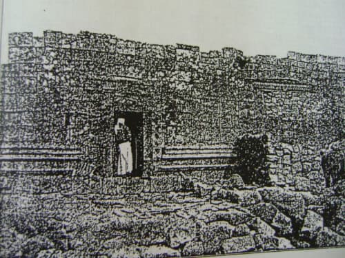 يوجد معبدان شرقي وغربي؛ أحدهما أكبر من الآخر، فالمعبد الغربي مربع الشكل، طول ضلعه نحو ثمانية أمتار، علماً أنه لم يكن متوجهاً إلى الجنوب أو الشرق، ولم يتوجه أحدهما مقابل الآخر، فمن الواضح أنهما يتوجهان باتجاه الشمال، كما أنه من غير المؤكد أن يكون لهما رواق معمد كما في نمط المعابد السورية الصغيرة، ويبدو ذلك من خلال الزخرفة المعمارية. ويرجح أن تاريخ المعبدين يعود إلى النصف الأول من القرن الثاني الميلادي؛ كما في معابد "سليم"، و"المشنف"، و"سيع"، و"قنوات"، وقد شهدت هذه الفترة ازدهاراً في الزخارف المعمارية في منطقة "حوران" ككل. وقد بقي من المعبد الشرقي كما شاهده "بتلر" جداران؛ شرقي جنوبي، وجزء من الجدار الشمالي، أما المعبد الغربي، فتبقى منه جدار غربي وشرقي