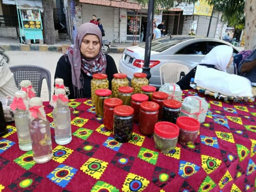 "سبق لي المشاركة في عدة مهرجانات بمناسبات مختلفة، كعيد المرأة العالمي وحملات مناهضة العنف ضد المرأة أشارك اليوم بمنتجات بيتوتية خاصة بالمونة، من دبس فليفلة ورمان وزيتون وكشك وعصائر فواكه وصباريات وصابون، الإقبال جيد ومشجع، والمهرجان فرصة لنا لتقديم منتجاتنا مباشرة للمستهلك» بحسب حديث المشاركة "هند عبد المجيد رستم " لمدونة وطن
