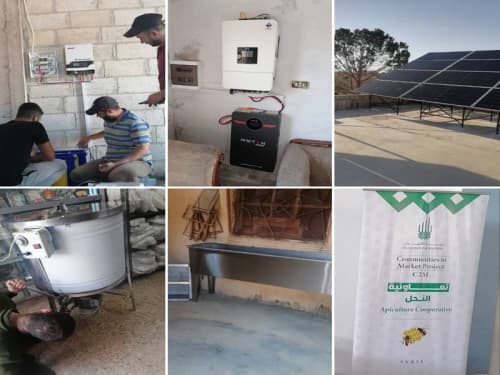 ويتابع حول الدعم المقدم:«بدعم من مؤسسة الآغا خان عام 2024 أُقيمت دورات تدريبية للنحالين في هيكلة التعاونيات وآلية عملها والجدوى الاقتصادية، وقدّمت منحة مالية قدرها 79 مليونًا و500 ألف ليرة سورية، غطّت تكاليف منظومة الطاقة الشمسية وشراء الفرازة وطاولة القشط وخزان التصفية، وعبوات مختلفة الأحجام وبدلات للنحالين. وننتظر منحة أخرى بقيمة 110 ملايين لإنشاء ورشة نجارة لصناعة خلايا النحل وبيع الفائض. كما تشمل الخطة جهازًا لفحص جودة العسل. وتبلغ كمية الإنتاج السنوي للتعاونية 50 كيلوغرامًا بشهده، ومن 70 إلى 80 كيلوغرامًا مصفّى».