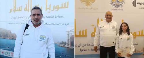 وجّه 14 سبّاحاً وسبّاحة من عائلة "زيدان" في اللاذقية رسالة سلام ومحبة إلى العالم عبر مبادرة "سوريا رسالة سلام"، حيث قطع المشاركون مسافة 22 كيلومتراً سباحةً تتابعية، انطلقت من ميناء جبلة وصولاً إلى"شاطئ اللاذقية"، بمرافقة كوادر رياضية وطبية وإعلامية وأبطال من القوى البحرية.